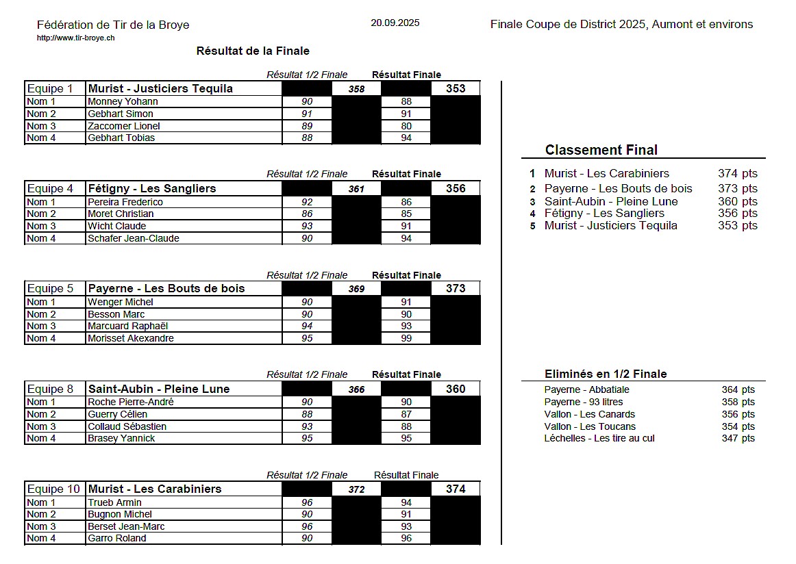 La société de tir de Aumont et Environs accueillait cette année les tireurs qualifiés de la Broye pour