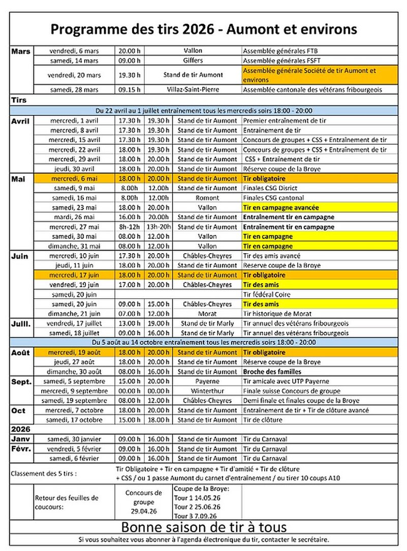 - Programmes des activités du Tir Aumont et Environs 2026 -